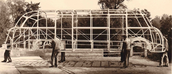 一年多之后,也就是1951年10月的某一天,六名工人扛着一个管状框架的照片震惊了当时的客车制造领域,毫无疑问,奥托和乔治华尔的实验成功了。正是从这一刻开始,赛特拉(SETRA)开启了客车轻量化以及高安全性的新篇章,这预示着客车可以脱离承载式底盘+车身的束缚,可以独立生产框架结构的新车型。