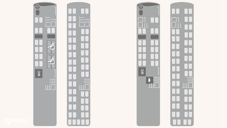 S531 DT的客容量在78、83人,左右两个照片对比不难发现这款车型可以提供专属定制服务,体现在座椅布局、轮椅预留空间。