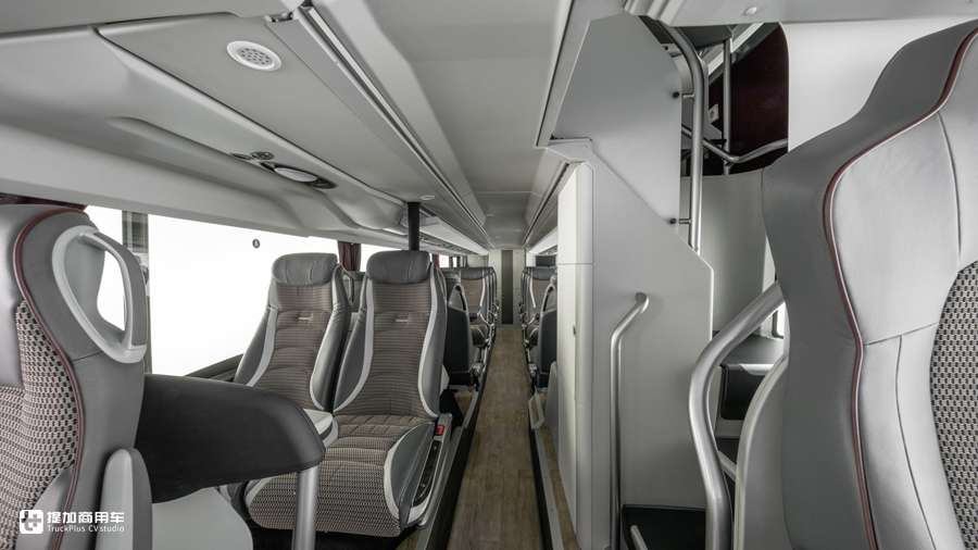 可能读者们看到这款SETRA顶级车型似乎有一种独特的感受,主要在模块化设计的强大理念下,使得这款车型与奔驰ACTROS卡车不少模块采用了共享模式。奔驰豪华轿车、重型卡车(ACTROS、AROCS)中普及适用的怀挡式换挡、辅助制动操作同样在这款奢华巴士中有所体现。