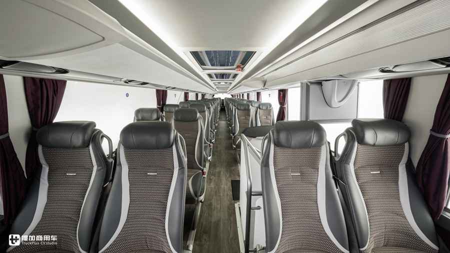 上层整体垂直高度为1837mm,采用了下层相同的2+2座椅布局,在上排空间最主要特点体现在顶置透明天窗,可以尽情欣赏沿途的风景。