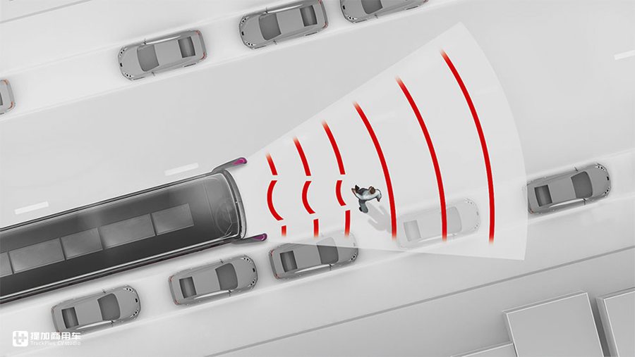 上文提到的行车监测系统可以识别前方80米处的行走、跑步移动的行人。如果超过了规定的制动距离的情况下,没有降低行车速度,系统会自动提醒驾驶员,如果还是没有制动反应,将会自动执行紧急制动。