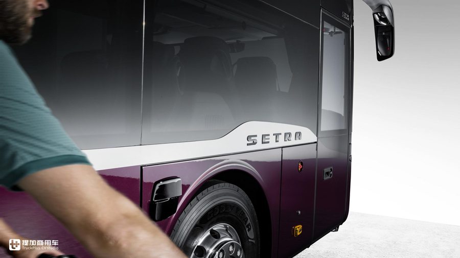 近距离观察不难发现,这款车型所使用的SETRA 立体字母标识是该品牌车型的一大设计亮点,说到这不少读者会想到曾经在中国高端豪华大巴中叱咤风云的 S215HD车型。