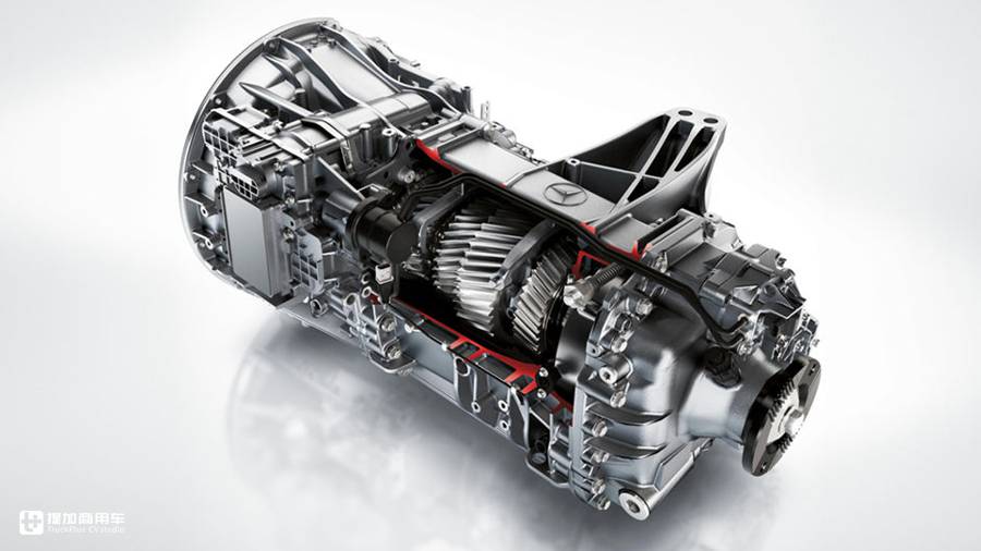 与这款发动机相匹配的是奔驰自主研制的GO 250-8 MPS (PowerShift 3代) 8挡手自一体变速器,比主流干线物流卡车使用的奔驰G211 12挡变速器更具针对性。