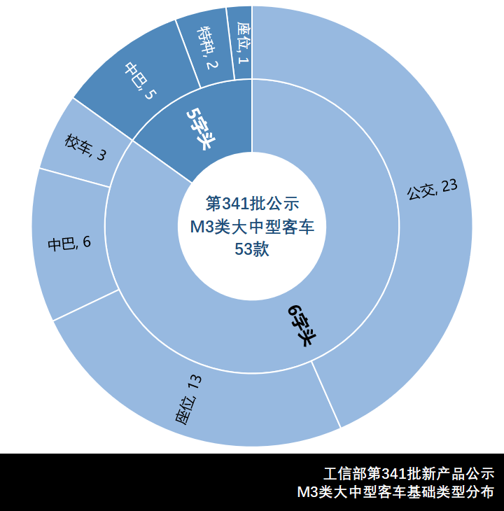 2月3日,工信部发布第341批车辆新产品公示清单,由于春节假期的原因而时间略有提前,同时各车企也大多选在年前完成这一轮的产品调整,链接详见。经笔者对1944款汽车新产品的统计与分类,本批M3类大中型客车共计53款(不含底盘,后同),较上批的60款继续走低。如同往批次一样,不论新品数量多少,“看点车型”依旧不少,以下详细道来。