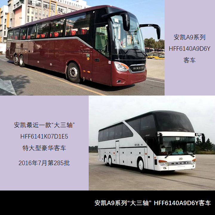 安凯客车本批出现了两款“长度极端化”的新品,分别是A9系列的13.7米“大三轴”HFF6140A9D6Y和A5系列的7.5米HFF6750A5D6Z。