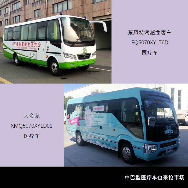 本期出现了两款中巴型医疗车,包括东风特汽超龙客车EQ5070XYLT6D和厦门金龙XMQ5070XYLD01,前者是利用传统农客中巴改制而来,后者则是新一代考斯特风格的复刻。中巴型医疗车也来抢市场,其实是疫情防控带来需求激增后的必然结果。对于M3类医疗车而言,开始的市场需求可能集中在城市、大客领域,但随着市场推进,逐渐要向县乡、中客甚至中巴领域蔓延,与此同时,城市也会出现强调通过灵活性、停车便利性的中轻型产品。每一款产品其实都有适合自己施展的领域,只要找好自身定位,满足细分客户需求,这也是“市场无限可分”理论的最好证明。