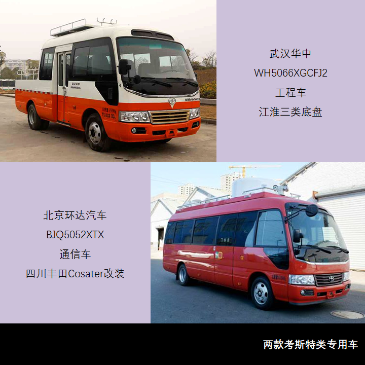 本批还有两款考斯特型中巴专用车。一款是武汉华中的WH5066XGCFJ2工程车,车长5990mm,利用江淮HFC6570KY1S三类底盘改装,国六柴油动力。熟悉工程车行业的读者都清楚,武汉华中在该领域一直是特色产品而存在,通过大量的市场经验积累,如今的武汉华中对于工程车也有了更深的认识,比如该车的加强型顶走道、后弹簧拖勾、封闭式真空辅助灯等专用装置,就是对客户需求的深入理解,由此也引发另一个思考:我们距离真实的客户需求还有多远?另一款是北京环达汽车的BJQ5052XTX通信车,利用四川丰田Cosater改装,在更强调平顺性和舒适性的专用车领域,川丰“牛头考”依然是不可撼动的存在,这也为国内的诸多高端中巴追赶者点明了另一个竞争领域:专用客车。(完)