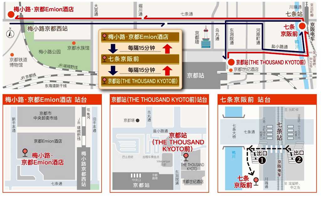 京阪巴士一直为京都观光旅游业提供重要的出行支持,其运营的巴士是京都观光游览不可忽视的城市风景线。此批巴士投放的公交环线,连接了 “七条京阪前站”、“京都站”、以及周边设有京都铁路博物馆和京都水族馆等游览景点的“梅小路·京都Emion酒店站”,环线既便利了乘客的日常出行,又满足了游客的观光需求。作为国际旅游城市京都的门户车站,在JR线京都站周边引入电动巴士将更好助力京都打造绿色城市名片。