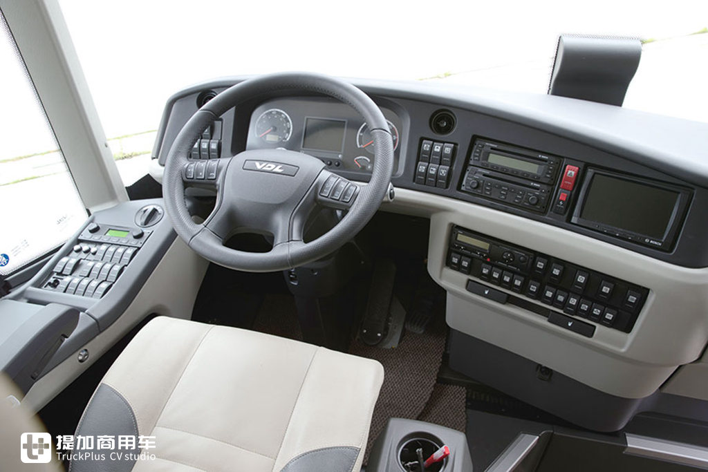 VDL与DAF两家公司共同属于美国PACCAR集团旗下所有,在内饰部件上有诸多共同点,例如集成式方向盘、换挡操作也采用了与之相同的模块化部件,可以看出整体操控性也向着更加舒适的方向迈进。