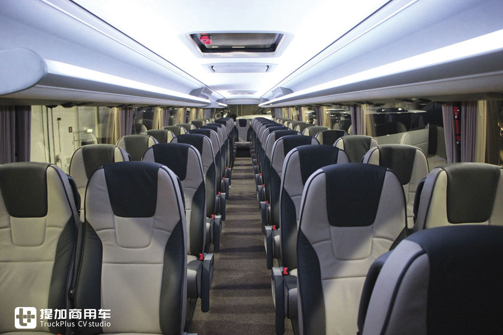 在续航方面,除了配备容量445升的主油箱以外,还可以选装250L和205L的燃油箱,可以适应更长距离的客运业务。