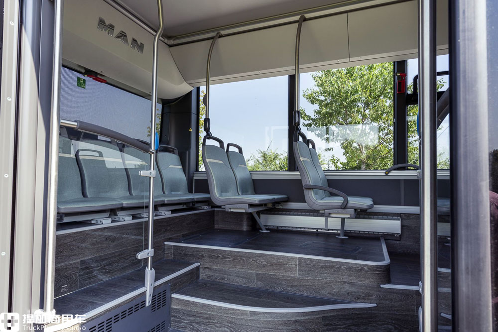 全新设计的驾驶区域十分开阔,带来了优秀的视野表现。新款Lion’s City E用上了新一代TG系列卡车的方向盘。与一体可调的仪表盘结合,造就了优秀的驾驶安全性和人体工程学表现。