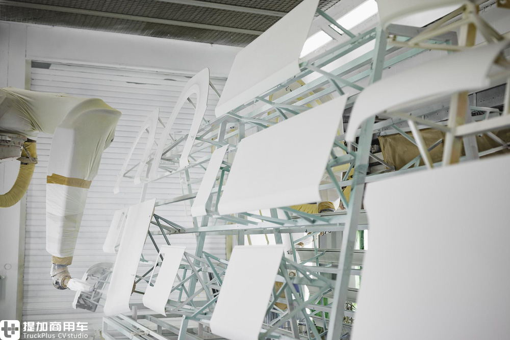 车辆的内外饰板均在喷漆车间内由机器人自动喷涂而成。