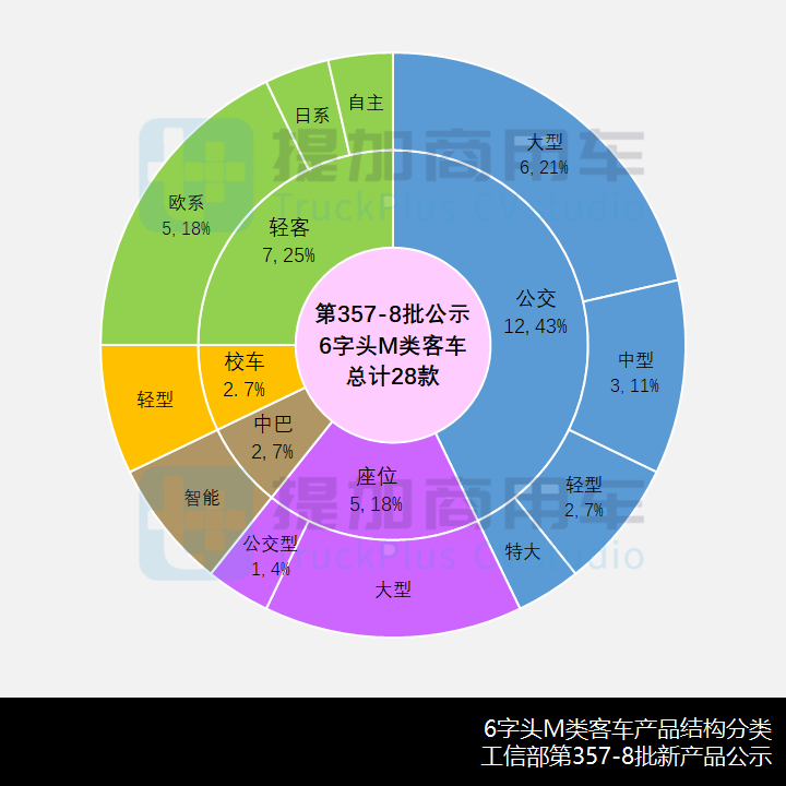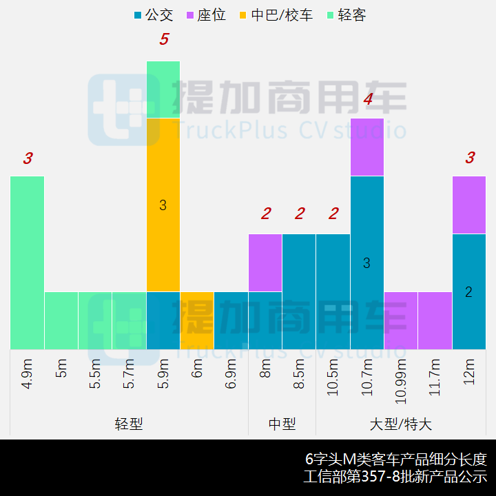 - 第357-8批公示新品覆盖4.9-12米的14个细分长度级别,较上批进一步细化,尤其很多“N.7米”新品加入战团,令人对这种“超高性价比”的车型刮目相看。