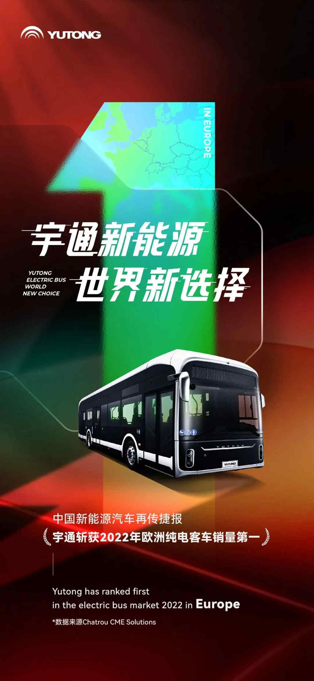 近日,中国品牌海外再传捷报,宇通纯电动客车凭借高阶的产品实力,摘得2022年度欧洲纯电动客车的销量第一。根据欧洲Chatrou CME Solutions咨询公司的统计数据显示:截止到2022年12月31日,宇通以479辆上牌量的成绩拔得头筹。此次豪夺欧洲销量第一,也向全球市场证明了宇通在内的中国客车品牌在新能源领域的硬核实力。