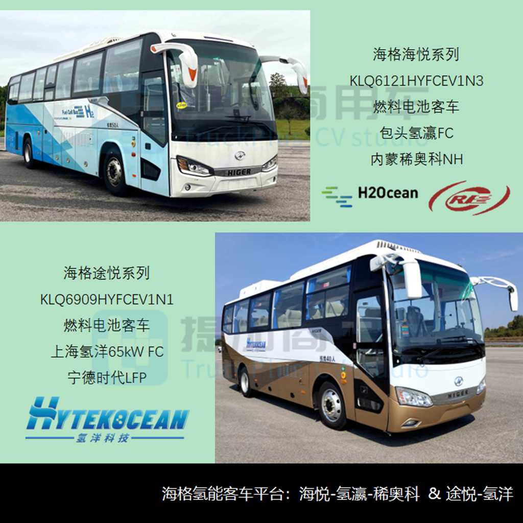 - 另款为上海氢洋科技65kW燃料电池为海格途悦系列KLQ6909HYFCEV1N1燃料电池客车配套(8995mm、40/38座),搭载宁德时代LFP动力电池,苏州金龙260kW电驱系统,续驶480公里。上海氢洋成立于2021年8月,位于临港片区平庄东路,主要基于英国子公司Hytekocean和英国拉夫堡大学氢能实验室的技术应用。