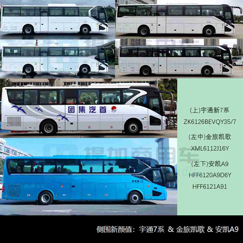 - 厦门金旅对凯歌系列XML6112J16Y客车选装了新款造型飘带,而安凯对其高端营运A9系列HFF6120A9D6Y和HFF6121A91客车选装了风格接近的飘带,亦可理解由三段分体件构成的整体元素。熟悉座位客车演变的读者或许记得,类似风格较早的成功版本当属厦门金旅的XML6129领航者NAVIGATOR系列,后由中通进行了造型简化,并申报了名为“鹰嘴”的造型专利,至此开始广为流传。