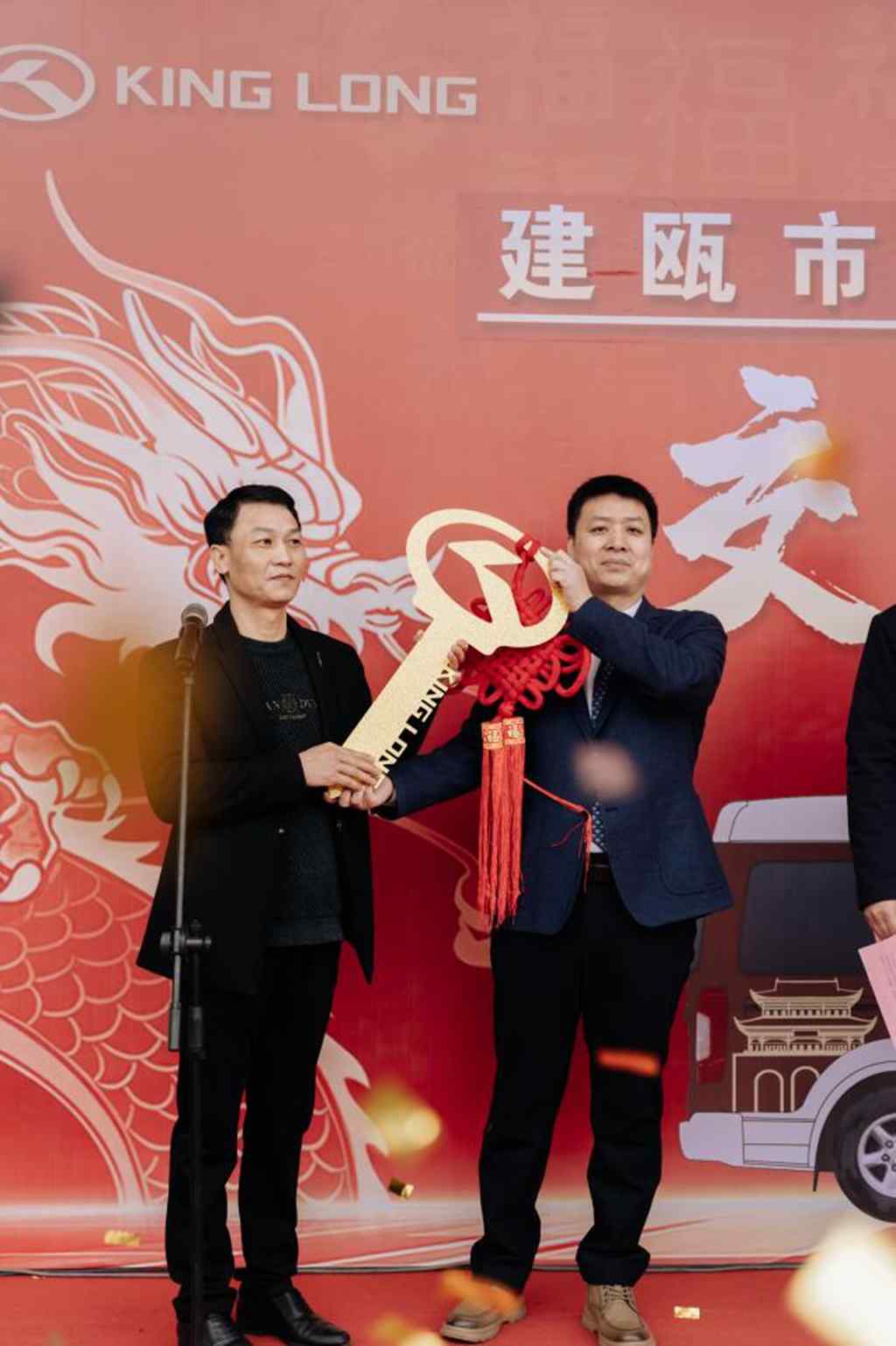 为构建完善的公共交通体系,提升公交服务供给能力,填补城区微定制公交线网空白,解决社区居民出行“最后一公里”难题,2月6日,厦门金龙联合汽车工业有限公司(以下简称“金龙”)与建瓯市公共交通有限公司(以下简称“建瓯公交”)举办了交车仪式。建瓯市市长吴伟,建瓯市领导林威鸣、张年雄,福建汽车工业集团副总经理林源等领导出席此次活动。
