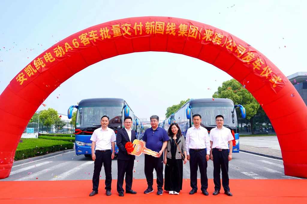 凭借安全、可靠、高效、环保等产品特质,安凯纯电动A6已助力新国线来宾公司构建绿色客运体系,持续推进城乡公交一体化进程。此次已是新国线来宾公司第三次购买该车型,这批新购入的A6将投入到南宁、桂林、百色等地的研学游服务中,有效推动新国线来宾公司在广西客旅“内卷”大赛中上大分。