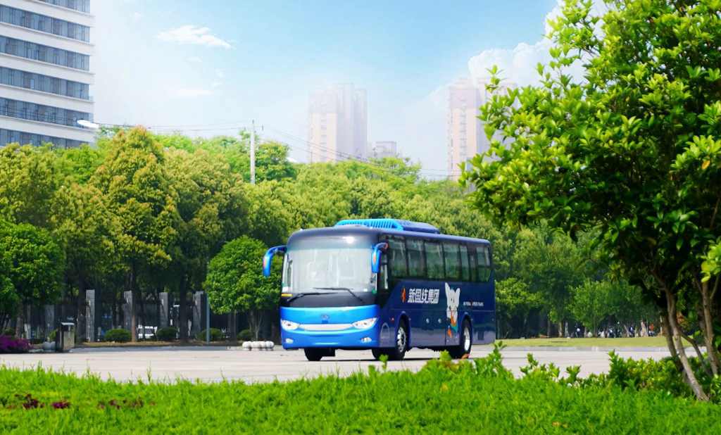 本次交付新国线来宾公司的11.3米安凯纯电动A6,涂装幽蓝、优雅大气,整车采用低风阻造型设计,兼具时尚与节能,与广西秀丽的诗画山水、浪漫的北部湾风光、多彩的民族文化相契合。