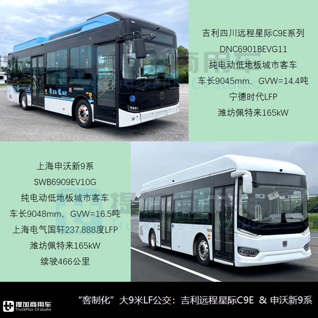 客制化:吉利C9E、申沃大9米BEV公交,珠海广通、创维竞途10.99米柴油