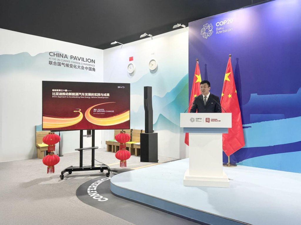 第29届联合国气候变化大会(COP29)于11月11-22日在阿塞拜疆首都巴库召开。本届大会以“团结一致,共建绿色世界”为主题,重点关注气候融资问题,呼吁“提振雄心,赋能行动”。作为全球新能源领导者和绿色发展实践者,比亚迪积极参与本届大会,推动新能源产业的可持续发展。