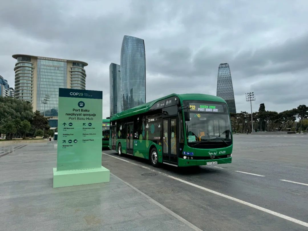 大会前夕,比亚迪为COP29量身订制的160台12米电动大巴K9UD正式交付,并在10月31日接受阿塞拜疆总统伊利哈姆·阿利耶夫的检阅。如今,该批电动大巴已在阿塞拜疆首都巴库正式运营,为来自全球80多个国家的参会政要、企业家和媒体人员提供出行服务,受到一致的好评,助力大会实现零碳交通目标。