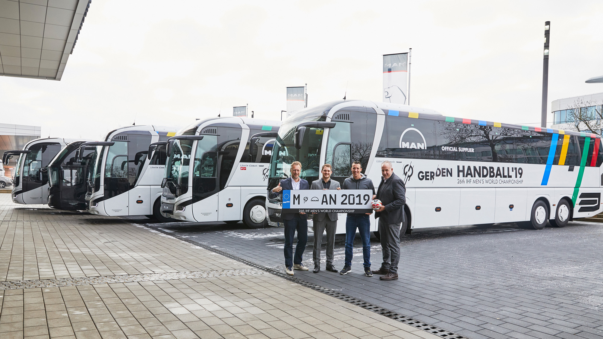 近日,第26届世界手球锦标赛在德国和丹麦成功举办,共有24支队伍争夺大赛冠军头衔。曼恩商用车作为本届大赛的官方合作伙伴,为选手们提供了舒适性与安全性兼具的大巴,护航选手顺利前往比赛场地。
