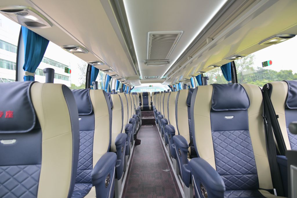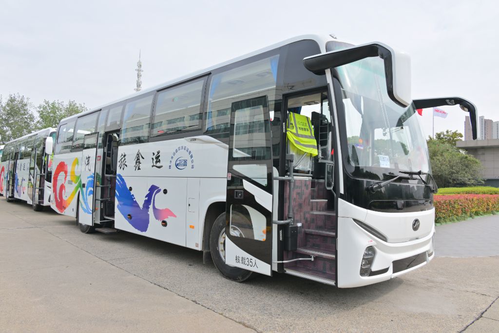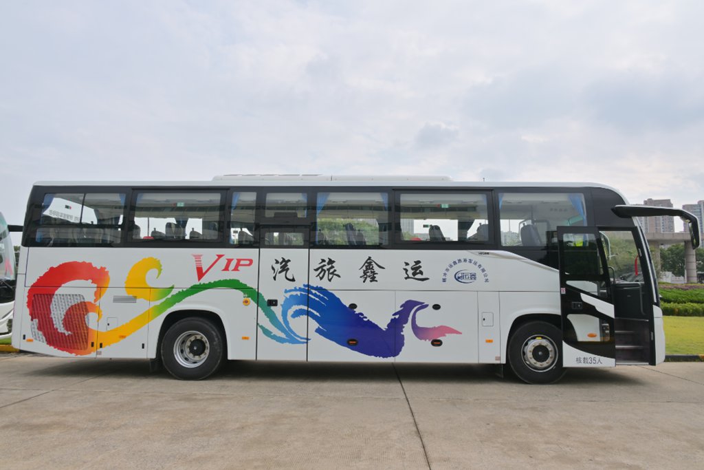 运鑫旅运采购的该批11米海格新V系客车外观以白黑色搭配,车身侧面印有醒目的七彩色条纹装饰;车辆内部采用“2+1”座椅布局,舒适感强,专为高端旅游市场量身定制。运鑫旅运车队队长明景舰表示,“此次采购的这批海格新V系客车,旨在满足国内精品游、边境游以及个性化定制线路的出行需求,所以对于车内空间、USB充电接口、饮水机以及智能座舱系统等配置都做出了要求,将为乘客的旅途体验带来质的飞跃。”
