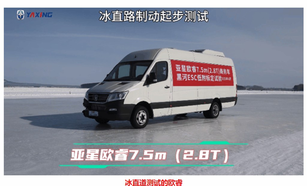 此次高寒标定测试,亚星客车针对极寒地区用户的实际需求,制定了全面而严苛的测试项目。在冰雪覆盖的试验场地上,欧睿轻型客车从容应对雪地环道、冰地环道、10%/15%/20%坡度高低附面坡道制动和起步、10%/15%/20%坡度高低附面坡道倒档起步等极限挑战,展现了出色的操控性。