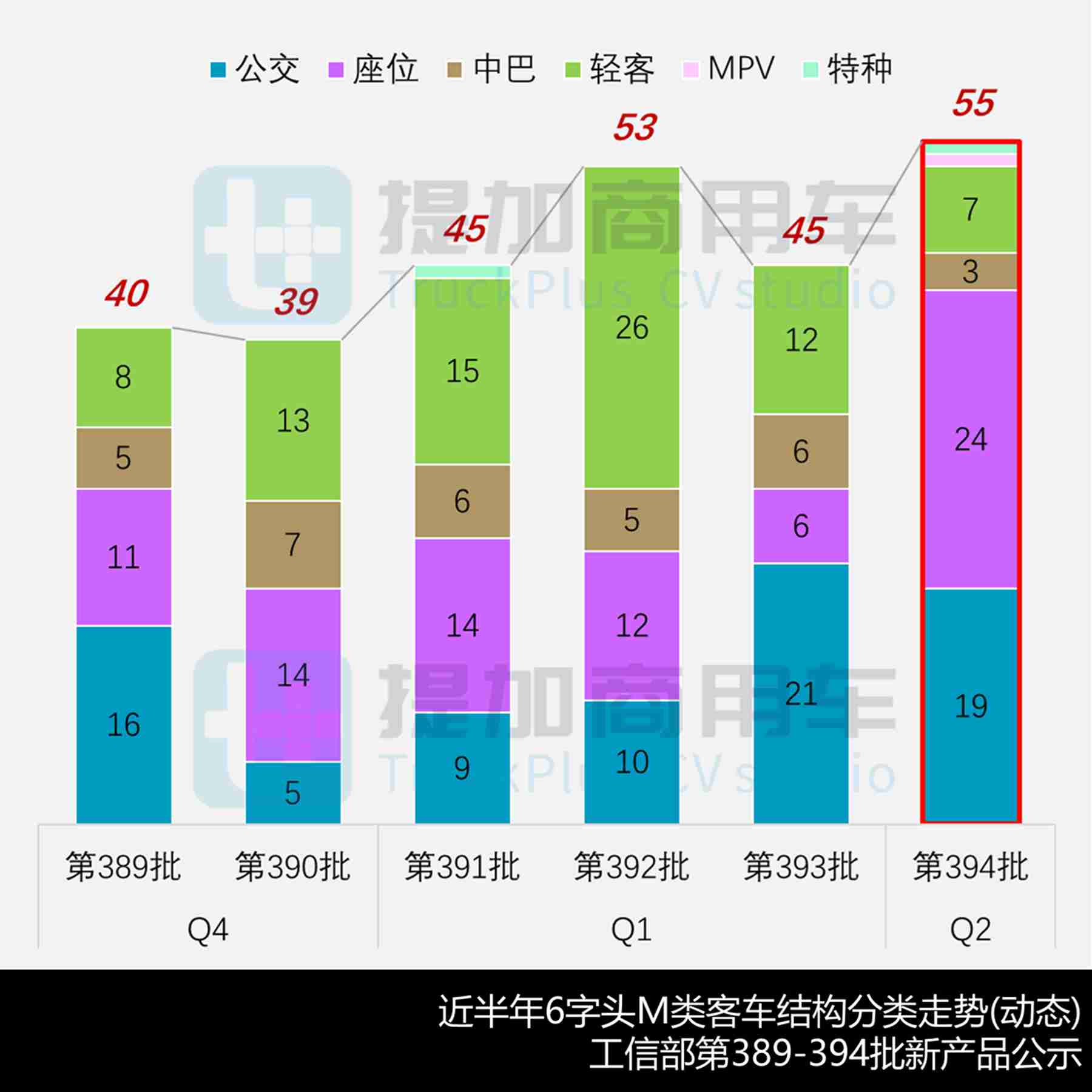 3月份大中客市场延续走红、轻客陷入困境,4月期公示新品55款创下年度新高