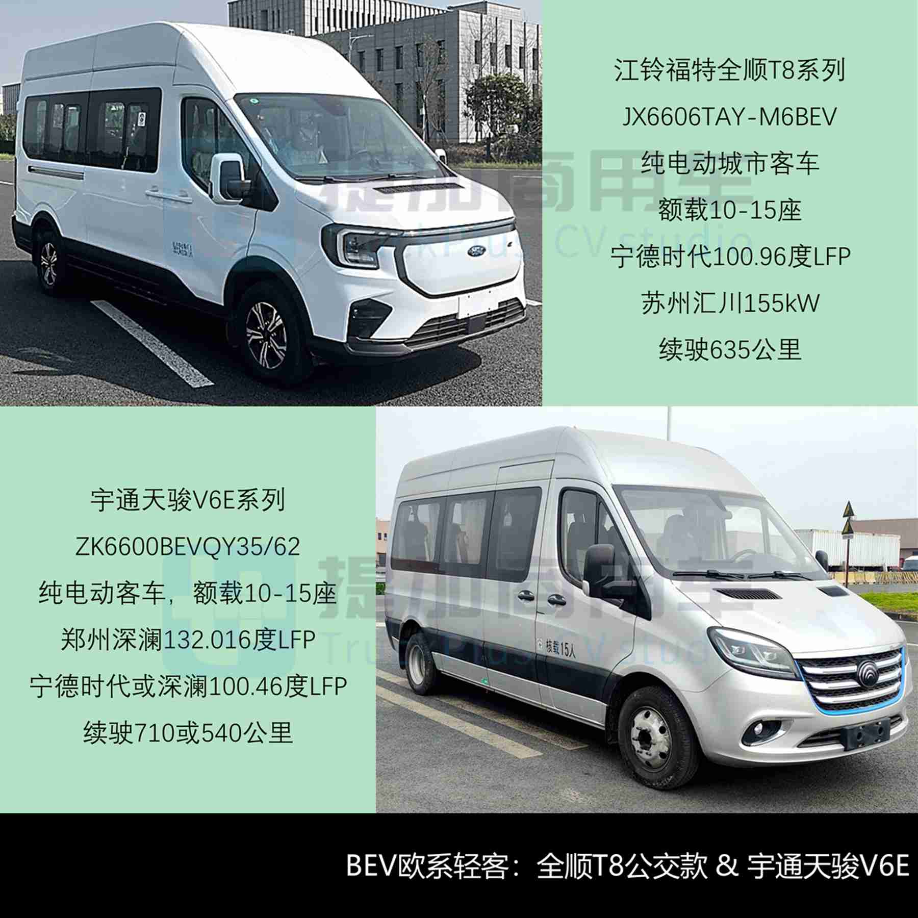 BEV欧系:全顺T8首款公交、宇通天骏V6E;金杯海狮王团体版、雷驰信·V80