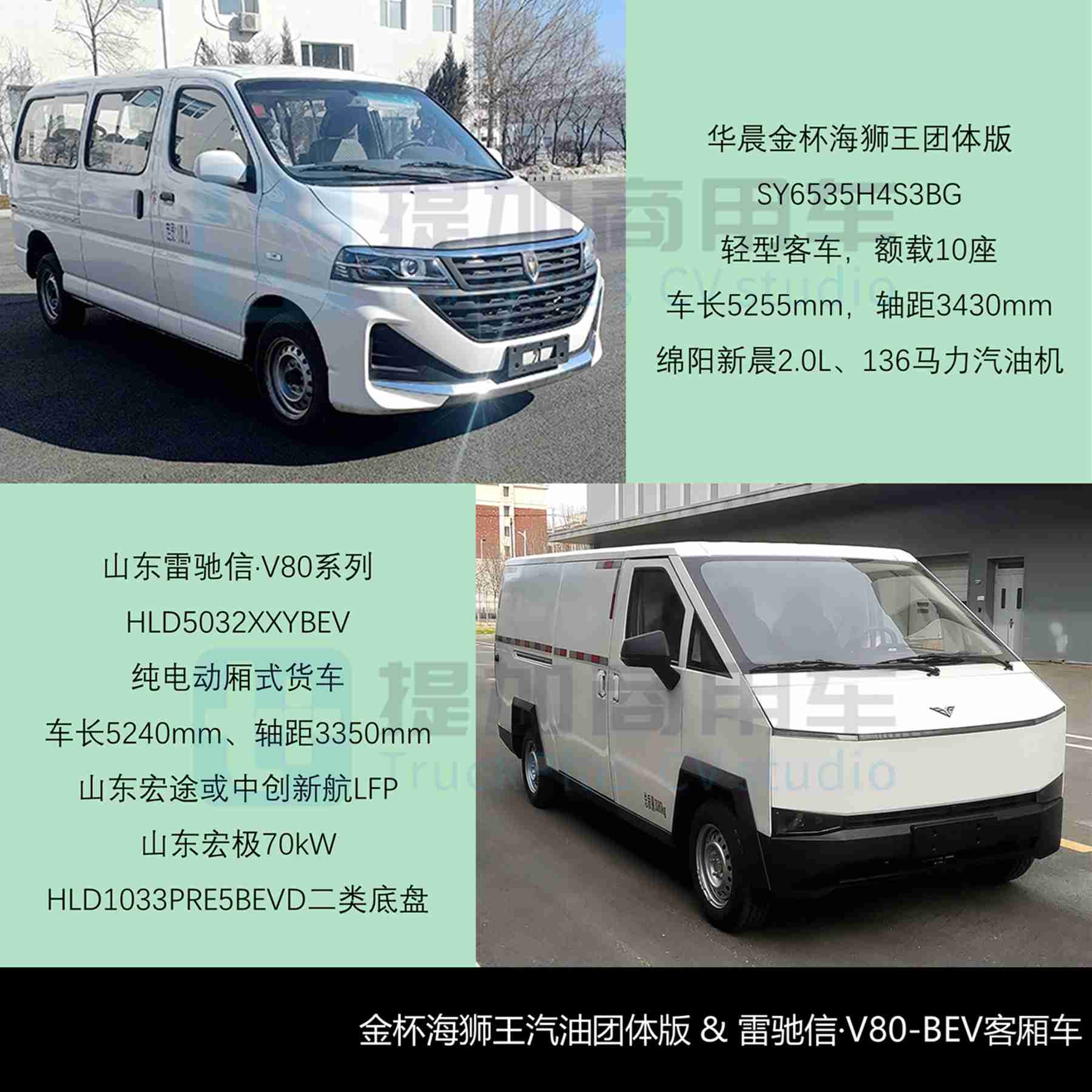 - 目前,重组后的华晨雷诺金杯汽车有限公司已在工商系统更名为金杯(沈阳)汽车有限公司,近期与吉利远程携手、推出了吉运E8/E6系列新品,又在4月与其合资成立了沈阳醇氢生态科技有限公司(远程52%+金杯48%),正在积极准备复工复产准备中;而借势远程商用车及其特色的甲醇业务,也成为金杯重启的关键一步。本批华晨金杯申报了非营运版的海狮王系列SY6535H4S3BG轻型客车,将自有的经典产品线重新做基本型覆盖、达到可售状态。该车全长5255mm、轴距3430mm,原型基于金杯阁瑞斯facelift而来,国外原型为丰田Granvia,车宽1825mm介于日系窄体海狮与欧系宽体轻客之间,采用MPV架构,前双横臂、后单臂式螺旋簧独立悬挂,亦可选装后5片板簧悬挂,亦与轻客有较多相似处。该车额载10座,后单胎驱动、195号轮胎,匹配绵阳新晨2.0L、136马力汽油机,油耗9.5L/100km,最高150km/h。另本批华晨金杯还申报了两款电动化的经典海狮SY5033XXYL-BEVDHB/1纯电动厢式货车,分别搭载宁德/福鼎/新津时代53.58度或湖北亿纬50.232度LFP动力电池,潍坊佩特来100kW驱动系统,续航均为300公里,从采用钣金件物理隔断可窥得老牌日系轻客的扎实作风,与一些利用简易PVC内饰板的传统客车企业形成鲜明对比。