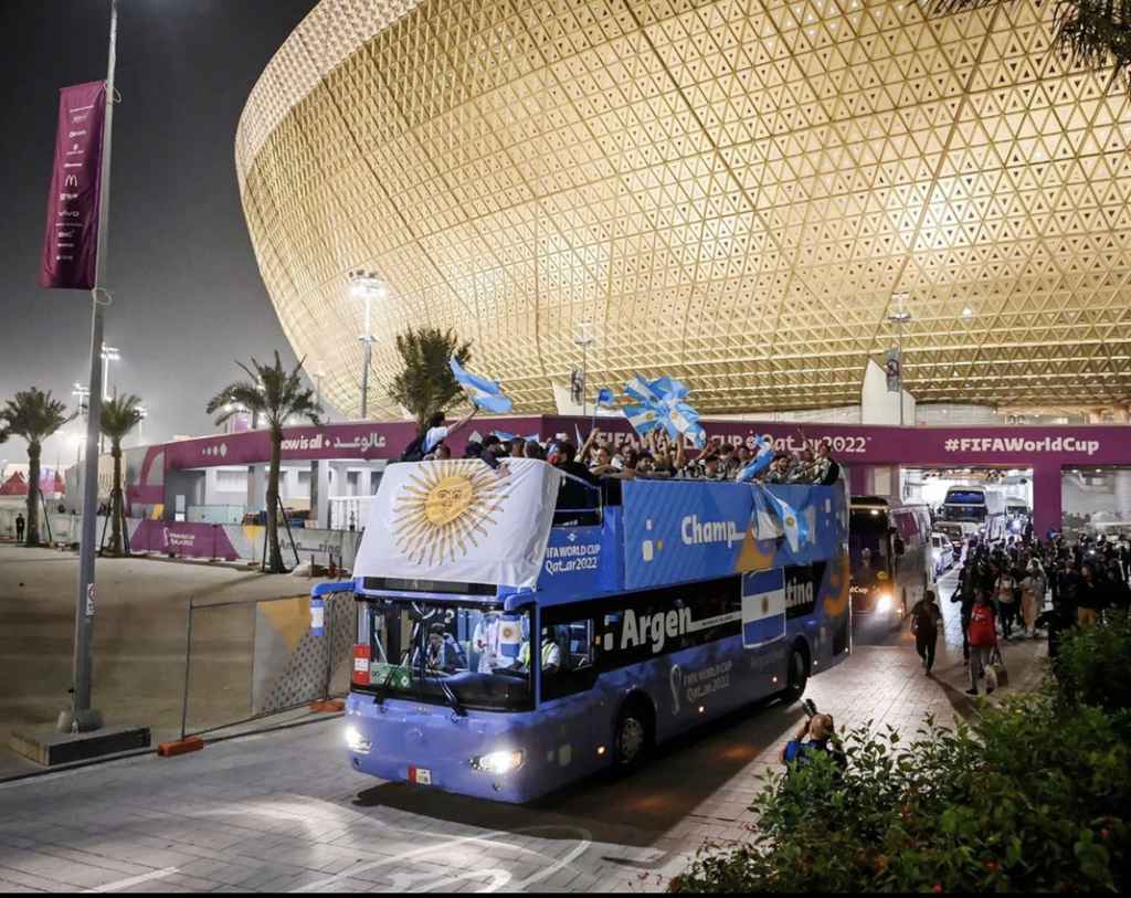 卡塔尔世界杯阿根廷夺冠后乘坐海格双层巴士巡游