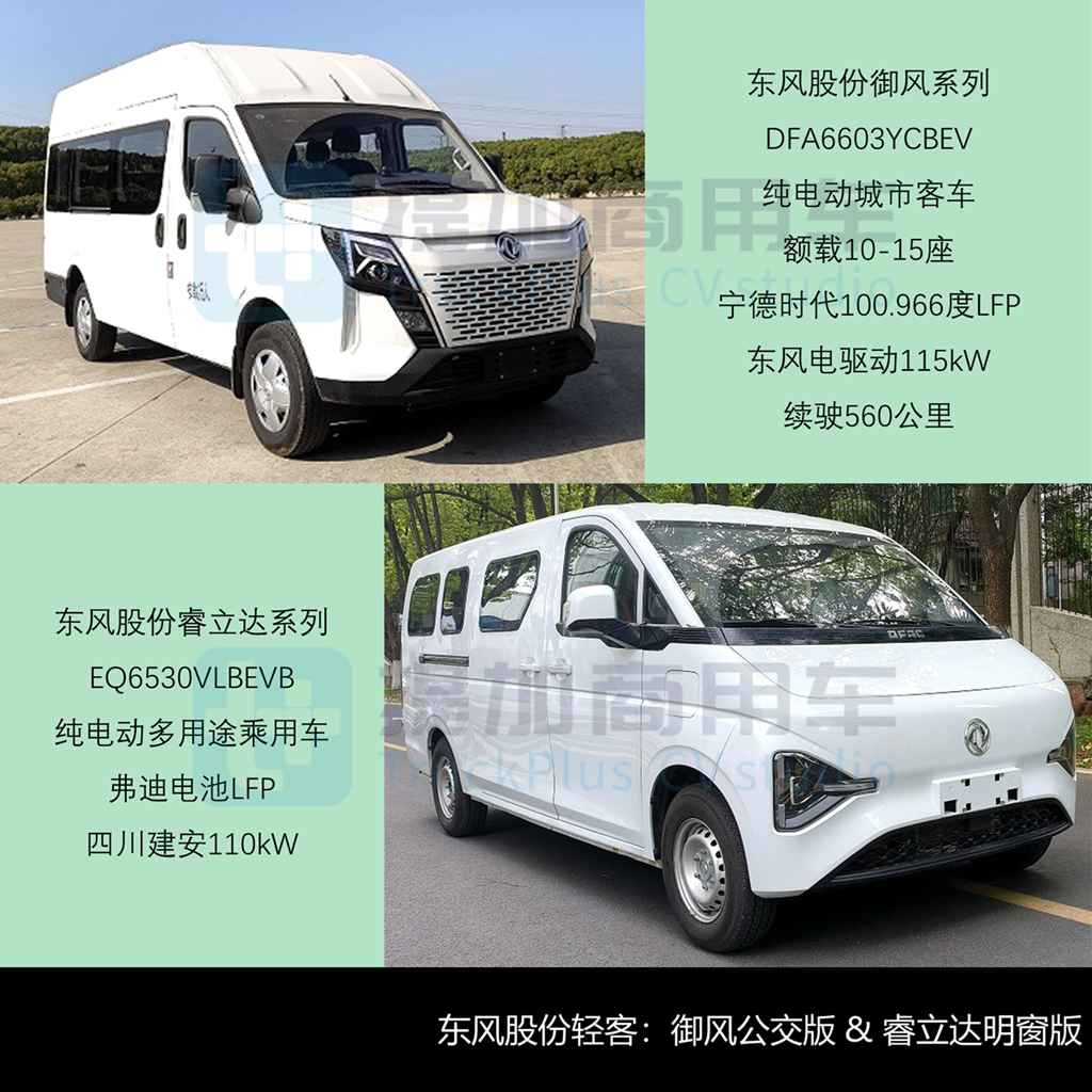 - 首先是御风系列“小公交化”的DFA6603YCBEV纯电动城市客车,可选驾驶室外额头电牌造型,轴距3610mm、可选中顶或高顶规格,GVW=4990kg,额载10-15座,前独立、后3+1片板簧悬挂,后单胎驱动、215号轮胎,搭载宁德时代100.966度LFP动力电池,东风电驱动115kW驱动系统,续驶560公里。目前江铃福特T8、南汽欧胜、福田图雅诺等轻客谱系均已开启“小公交”之路,而宇通天骏V6本批也申报了首款公交化新品ZK6600BEVG62纯电动城市客车,搭载宁德时代100.46度LFP动力电池、续驶540公里——可知在500公里规模的微公交领域,轻客产品也正在掀起自己的“攻势”。