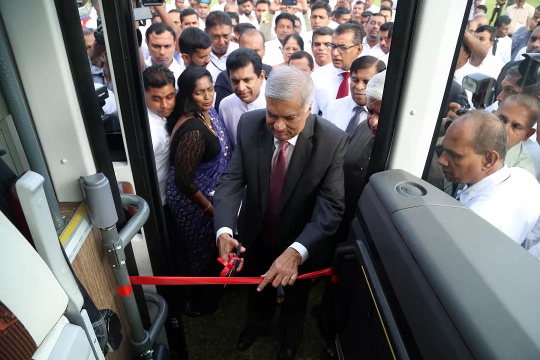 这是斯里兰卡国有运输企业首次采购中国品牌客车,具有重大的历史意义,斯里兰卡总理维克勒马辛哈到场见证这一重要时刻,并亲自上阵为新车剪彩,将车钥匙交给司机后进行试乘。“这批超级豪华客车将为斯里兰卡民众带来高质量的交通出行服务。”亲身体验龙威II代后,他为金龙客车产品点赞。