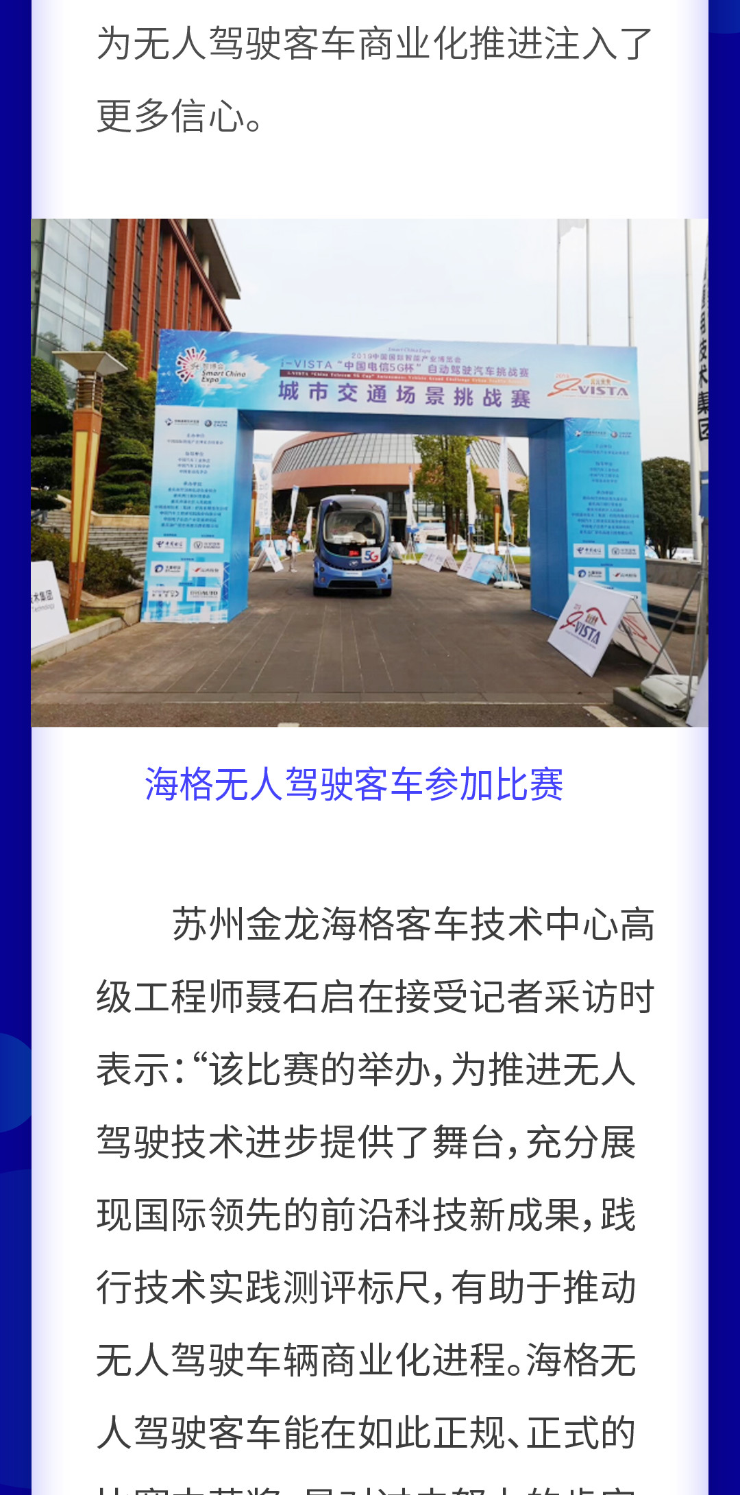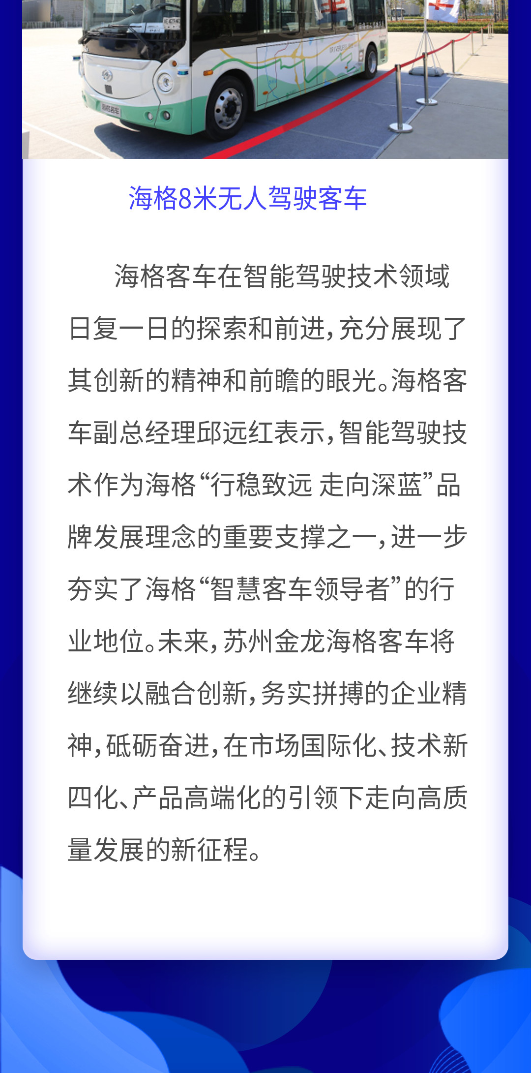 苏州金龙海格客车荣获2019i-VISTA自动驾驶汽车挑战赛三项大奖! 编辑张靖 企业快讯, 客车2019年9月1日 10:5713.15W0 海格客车(81)本文来源海格客车,经授权后由编辑张靖发布,观点不代表提加商用车网的立场,转载请联系原作者。编辑张靖提加商用车小编,还请大家多指教!6.22K940.67M39.63W