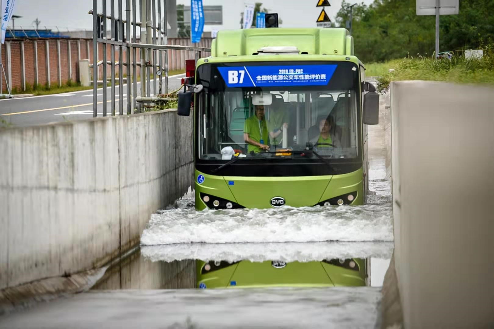 本届评价赛依旧结合公交行业新能源车辆的实际应用场景,覆盖了城市公交车绝大多数工况,如停车起步、加速上坡以及噪声测试等。在循环工况共约55公里的过程中,专业人员会对纯电动公交车辆的能耗、续驶里程、动力性、舒适性及安全性等技术指标进行全方位测评。值得一提的是,此次新增安全项目——涉水,并赋予其“一票否决权”,若车辆在整个比赛过程中,车辆绝缘监控系统提示绝缘故障或车辆在涉水池中自动切断动力输出,则取消该车的比赛资格,可见比赛对公交车安全性的重视和规则的严苛。