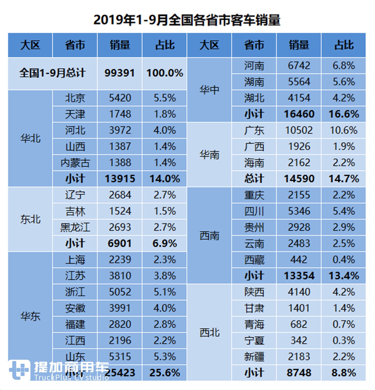 笔者在上一篇对2019年9月单月份的客车市场情况做了简述,以下对2019年1-9月的市场累计情况进行分析,并引入产品维度,将数据之间做联动。