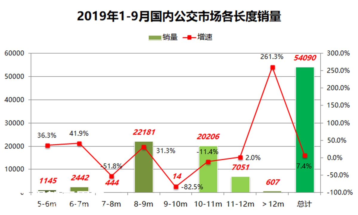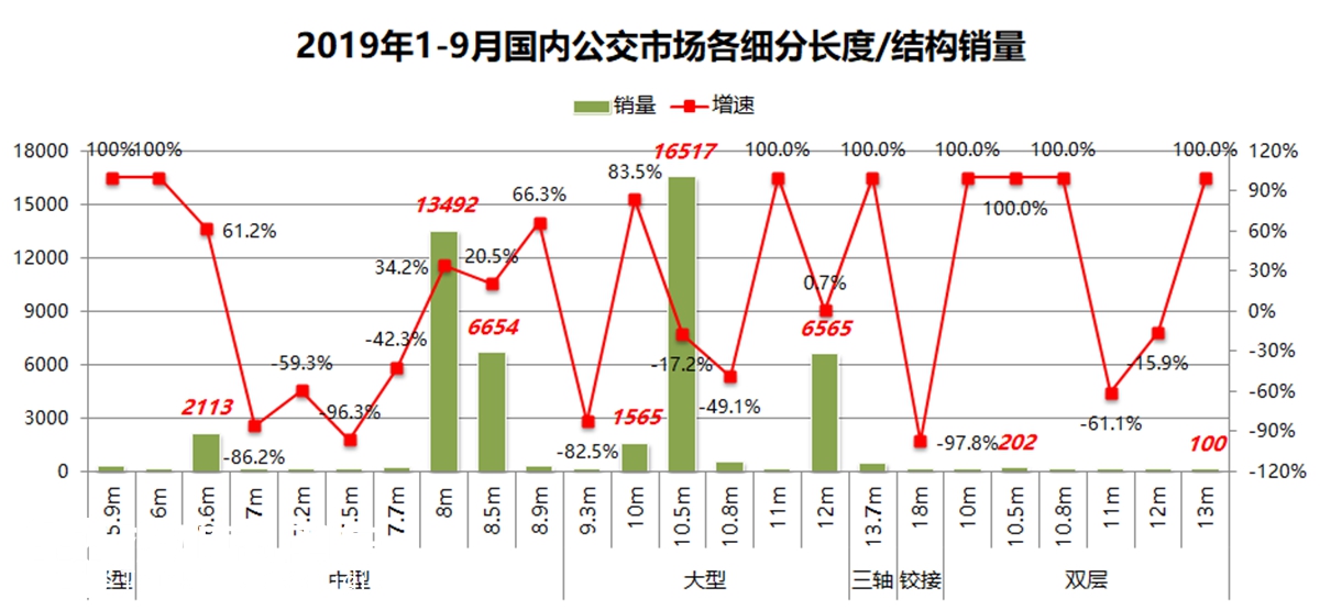 为便于说明目前公交市场对产品的引导,以上文中公交型的城市客车产品为分析对象,对其细分长度继续进行分析。