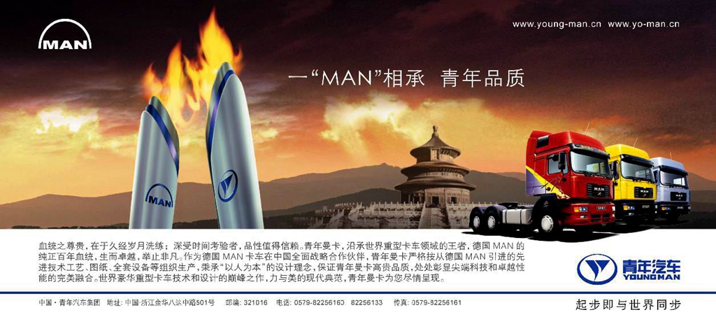 2004年,青年汽车集团成为德国曼恩集团在中国惟一全面整体合作的战略合作伙伴,青年汽车集团拥有使用曼恩集团的标志和商标的授权,成为曼恩卡车在中国的生产基地。2004年8月,第一辆青年曼重卡下线,尽管当时具有客车和轿车生产资质,青年汽车集团却被卡车生产资质卡在了门槛前,无法上市销售。