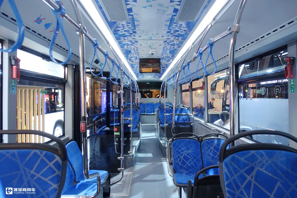进入车内,坐过老款KENT的朋友可能会觉得特别熟悉,在车内的布局上并没有过多的改变,12米的车身最多可容纳95名乘客,贯通式低地板结构的车厢除保留轮椅区域和原油箱位置处铺平设置地铁座之外,这款车依然按照OTOKAR自己的设计风格利用好空间努力增加座椅数量,这种布局不仅在样车上得到体现,在实际销售中也被多数客户直接选择使用。