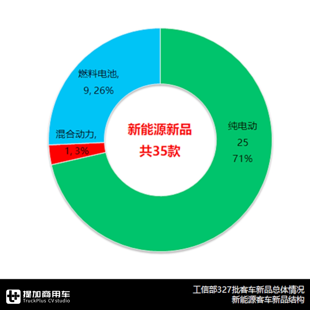 新能源客车方面,327批共申报35款新能源新品,比上批的53款减少18款、下降三成有余。本期在燃料电池占比1/4的“强大攻势”下,纯电动缩水至七成份额,混合动力则已成“昨日黄花”。近期笔者听到了很多爱好者热议混动的声音,诚然这是一种内燃机与电动机的过渡技术,但笔者认为早日放弃小众派的猎奇心理、主动顺应大趋势才是应有的态度。回顾十年前,彼时在一堆内燃机中偶尔遇到混合动力都当个宝,可当纯电动在2015年陡然爆发后,爱好者的关注似乎又转移到了电动车里找内燃机,如今“不以外界意见为转移”的公交电动化全面来临,爱好者似乎又开始重新关注混动技术,仿佛“什么小众就关注什么”——要知道,2019年的混动只有新能源客车的5.6%份额,怎一个惨字了得。