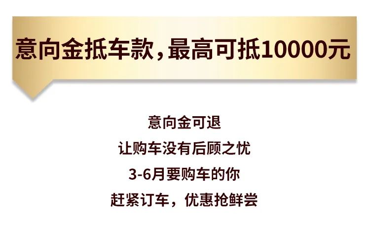 3月1日-3月31日支付意向金最高可抵车款10000元,CL6/CL7团购更优惠。购买T7送专属配置包购车免费赠送防疫配置包。让购车之旅更加惊喜!