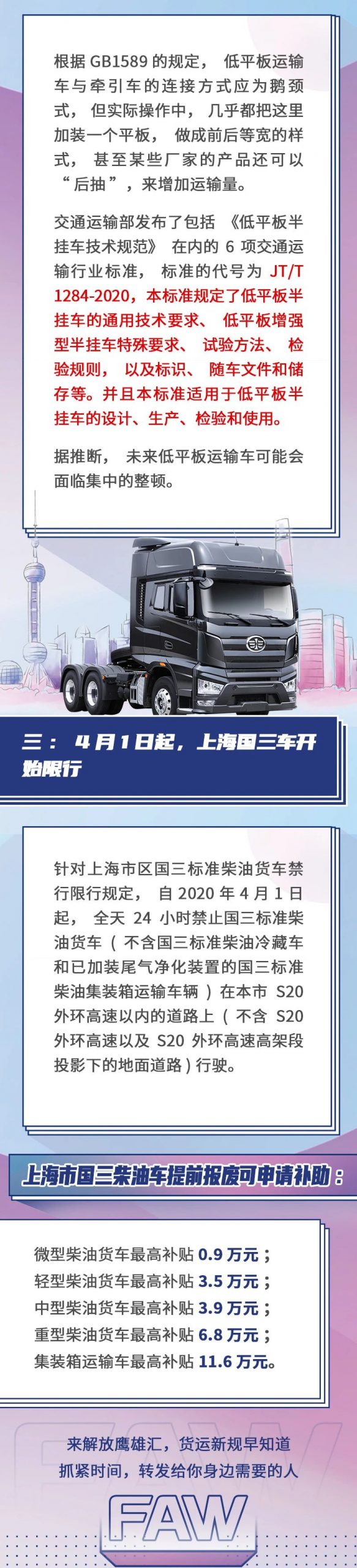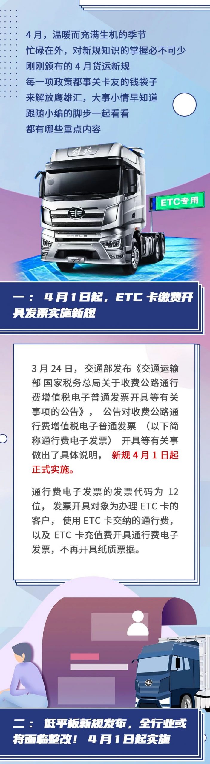 4月货运新规来啦!懂政策的卡友最会挣钱 编辑张靖 行业政策2020年4月1日 14:0712.55W0 ETC(39)一汽解放(539)本文来源解放鹰雄汇,经授权后由编辑张靖发布,观点不代表提加商用车网的立场,转载请联系原作者。编辑张靖提加商用车小编,还请大家多指教!6.22K941.61M39.63W