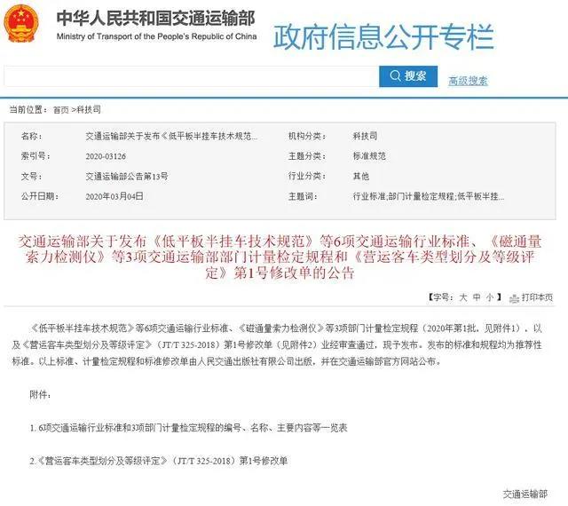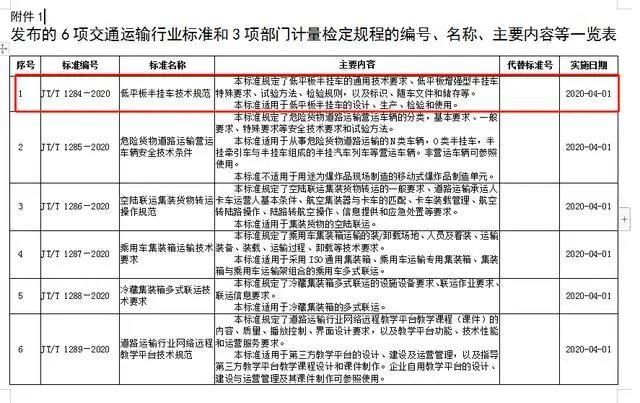 近日,交通运输部在官网发布了6项交通运输行业标准。其中在4月1日正式实施的两项,分别与低平板、危货车密切相关,甚至与卡友息息相关,快来了解一下吧。