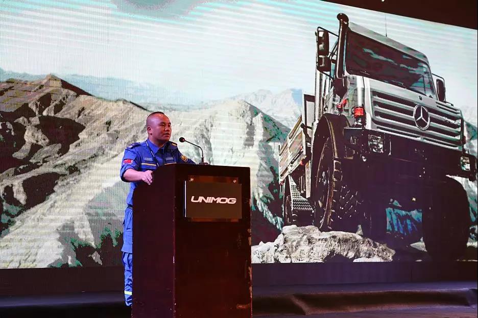 受邀出席的戴姆勒卡客车(中国)有限公司特种车辆销售部的柯文洛先生对乌尼莫克的历史、特性及救援案例进行了精彩的介绍。乌尼莫克全地形越野车是一部曾经以农用车为设计初衷的车型,经过多年演进,最终进化为汽车领域越野性能最为突出的全能型车型。而乌尼莫克超强的越野能力主要得益于其令人叹服的四轮驱动系统、独特的三点支撑设计、门式车桥、悬架系统等技术,加之优异灵活的上装适配能力足可应用于多种领域并保证系统在极为艰险的区域也完美运行,当之无愧的成为越野传奇、应急救护专家。
