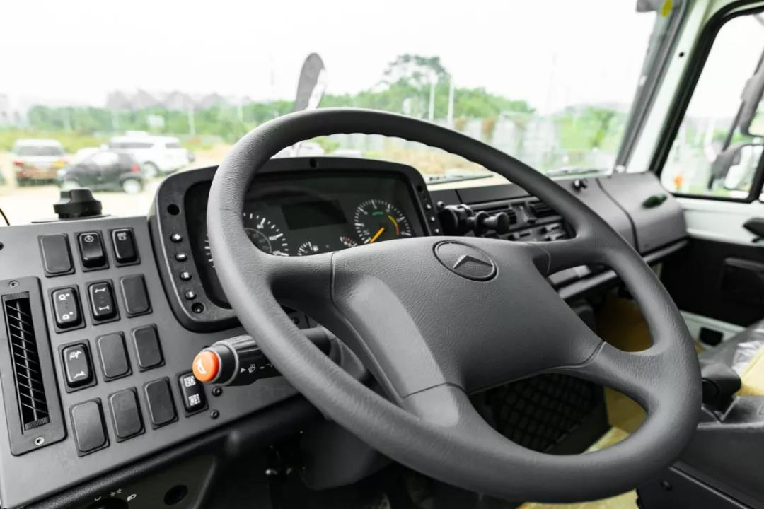 乌尼莫克配备自动充放气系统,通过驾驶室仪表盘上的按钮,即可对前后桥轮胎压力分别进行充气或放气调节,保证车辆在不同路况下行驶的稳定性。