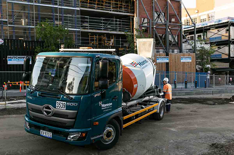 汉森水泥公司的日野小型搅拌车配备了2.6米的搅拌筒,其体积大约是公司大型搅拌车(通常配备7.5米的搅拌筒)的三分之一。