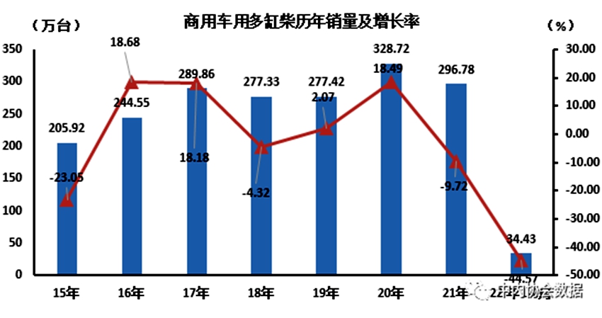 数据 | 商用车用多缸柴油机历年销量及增长率