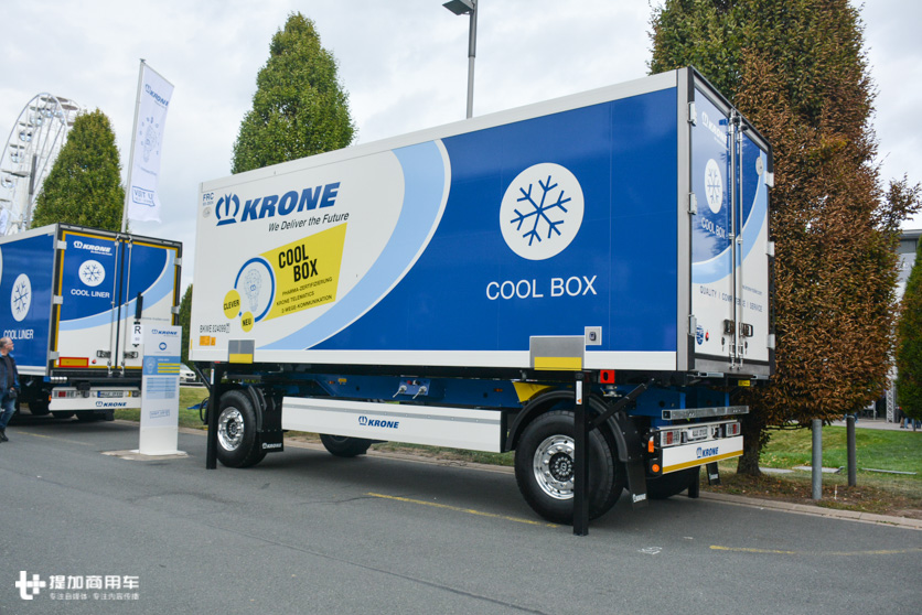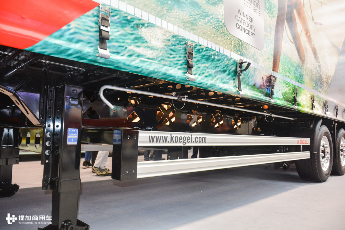 2018汉诺威商用车展克劳耐在展馆内和展馆外都有放置展车,他们的产品不仅是半挂车,还有全挂车、中置轴等车型,都是欧洲常见车型。